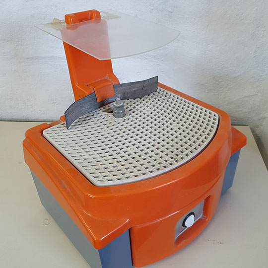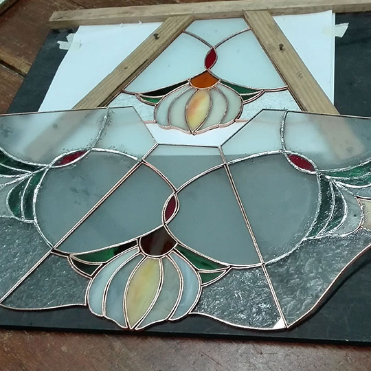 Una vez cortadas las piezas se pasan por la pulidora los bordes, para dejar estos lo más uniforme posible. Luego aplicaremos sobre ellos la cinta de cobre, lo que nos permitirá unir las piezas, aplicando la soldadura con estaño.